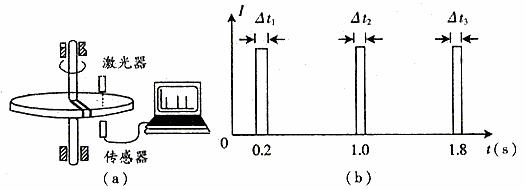 (3)设狭缝宽度为d,探测器接收到第i个脉冲时距转轴的距离为ri,第i个脉冲的宽度为△ti,激光器和探测器沿半径的运动速度为v。