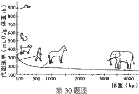 30.右图表示5种哺乳动物代谢速率与体形大小的关系。 据图分析,下列哪一结论是错误的