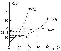 C.60℃时,200 g水中溶解80 g CuSO4达饱和,当降温至30℃时,可析出30 g硫酸铜晶体