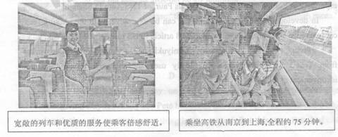 上海至南京的城际高铁(the intercity high-speed train)于2010年7月1日开通。请您简要描述以下两张图片的内容。列举人们对高铁开通的不同看法(至少两点),并谈一谈您的个人观点。文章的开头已给出。