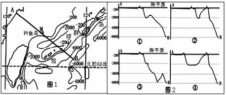 图1中的虚线为等深线,图中M点为中国的钓鱼岛。回答5-6题:![]()