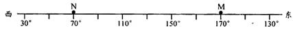 下图为南半球的一段纬线,图中M、N两点为北半球夏至日晨昏线与该纬线的交点。