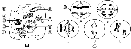 27.(16分)下图甲是某高等动物细胞亚显微结构示意图,图乙是该动物体内5个不同分裂时期细胞图。请据图回答以下问题: