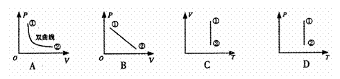 (2)如果环境保持恒温,分别用p、V、T表示该理想气体的压强、体积、温度. 气体状态①变化到状态②,此过程可用下列图象表示是 .