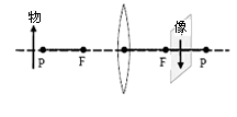 在探究凸透镜成像规律的实验中,当凸透镜、光屏、物体的位置如图所示时,光屏上能成一清晰的像,则下列说法正确的是[ ]