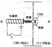 防盗门,如图所示为单元防盗门门锁的原理图,各家住户都安有一个控制开关S,用来控制门锁,图中只画出了其中一家住户的控制开关,该门锁的工作过程是:楼上的人闭合控制开关S,门锁上通电后的电磁铁吸引卡入右侧门上门扣中的衔铁,衔铁脱离门扣,门可打开。关于该门锁,下列说法中正确的是( )