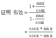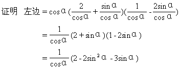 说明 以上证明中采用了“1的代换”的技巧,即将1用sec2α-tg2α代换,可是解题者怎么会想到这种代换的呢?很可能,解题者在采用这种代换时,已经预见到代换后,分子可以因式分解,可以约分,而所有这一切都是建立在熟悉公式的各种变形的基础上的,当然,对不熟练的解题者而言,还有如下的“一般证法”--即证明“左边-右边=0”
