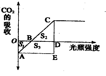 15.下图表示20℃时玉米光合作用强度与光照强度的关系,S1、S2、S3表示所在部位的面积,下列说法中不正确的是 ( )