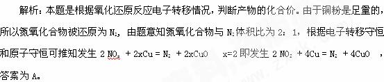 [例1 ]将22.4L某气态氮氧化合物与足量的灼热铜粉完全反应后,气体体积11.2L(体积均在相同条件下测定),则该氮氧化合物的化学式为