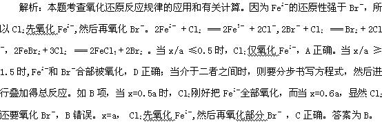 [例6]含有a mol FeBr2的溶液中,通入x mol Cl2。下列各项为通Cl2过程中,溶液内发生反应的离子方程式,其中不正确的是