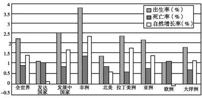 解析:第3题,读图知,亚洲、非洲、拉丁美洲的许多发展中国家人口自然增长率高,所以在未来43年间,全球增加的25亿人口主要分布在欠发达地区。第4题,德国由于高度发达的经济吸引了大量人口的迁入。沙特阿拉伯丰富的石油资源和较高的收入成为吸引人口迁入的重要因素。