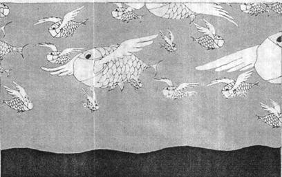 Some fish are forced to leave polluted water and are flying in the sky. But unfortunately, air is also so polluted that they have to wear masks. Each of them is crying, “Where is my home?” What a terrible sight!