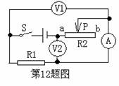 .12.如图所示电路,电源电压不变,闭合开关S,滑动变阻器滑片自a向b移动的过程中![]()