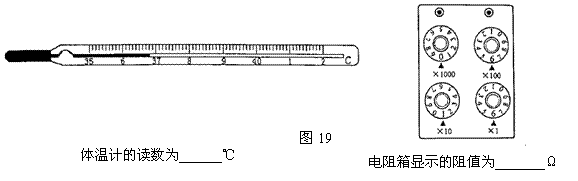 25.(2分)观察图19中的两幅图,将测量结果或示数写在相应的空格处。