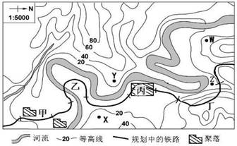6.该地区拟建一条铁路,有人设计了一选线方案(如图)。方案沿线甲、乙、丙、丁四处中