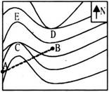 A.A、B、E三地中,B处是建火情瞭望哨最佳地点