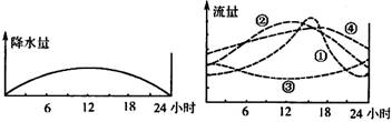 河流流量的变化与河流所在流域的植被覆盖情况有着密切的联系。读下图“某地降水量与河流径流量日变化示意图”,回答12-13题。