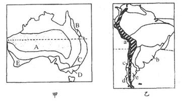 44.读澳大利亚(图甲)和南美洲的气候分布图(图乙),完成下列各题(12分)。