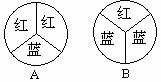 下面是两个可以自由转动的转盘,每个转盘被分成了三个相等的扇形,小明和小亮用它们做配紫色(红色与蓝色能配成紫色)游戏,你认为配成紫色与配不成紫色的概率相同吗?