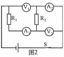 20.(2009年襄樊市)如图2所示的电路中,电压表V1的示数为9伏,电压表V2的示数为3伏,那么R1与R2的阻值之比为6A
