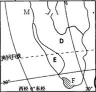 E为纳米布沙漠,它沿非洲西南大西洋海岸延伸2100千米,该沙漠最宽处达160千米,而最狭处只有10千米,其沿海岸线延伸的原因是
