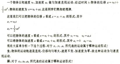 现在我们可以看到,我们已经把这个物体的运动分解成了两个运动:其一是速度为vO的匀速直线运动:其二是同方向的初速度为0,加速度为a的匀加速直线运动。可以说这种方法可以将比较复杂的一个运动运动转化成两个或几个比较简单的运动,这种方法我们称为运动的分解。实际上运动的分解不仅能够应用在直线运动中,对于曲线运动它同样适用。下面我们就来探究一下怎样应用运动的合成与分解来研究曲线运动。