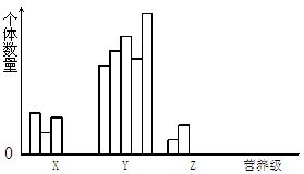6.经调查,某生态系统中Y、X、Z分别为第一、第二和第三营养级,每个营养级不同物种的个体数量如图甲所示(图中每一柱条代表一个物种)。一段时间后个体数量发生变化,结果如图乙所示。