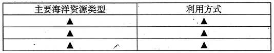 (3)填表回答舟山群岛海域目前已利用的主要海洋资源类型及其利用方式。(6分)