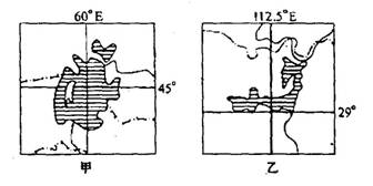 15 甲、乙两湖所处的自然带分别是①温带荒漠带 ②亚热带常绿阔叶林带 ③热带荒漠带 ④亚热带常绿硬叶林带