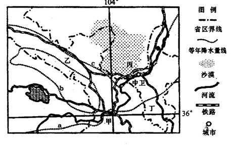 (3)丙处是腾格里沙漠,为流动沙漠,可采取何种措施防止附近铁路被沙漠覆盖? (2分)
