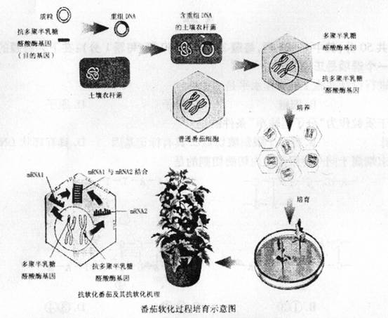 番茄营养丰富,是人们喜爱的一类果蔬。但普通番茄细胞中含有多聚半乳糖醛酸酶基因,控制细胞产生多聚半乳糖醛酸酶,该酶能破坏细胞壁,使番茄软化,不耐贮藏。为满足人们的生产生活需要,科学家们通过基因工程技术,培育出了抗软化、保鲜时间长的番茄新品种(操作流程如图)。请回答: