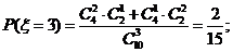 [例2](2006年安徽)在添加剂的搭配使用中,为了找到最佳的搭配方案,需要对各种不同的搭配方式作比较。在试制某种牙膏新品种时,需要选用两种不同的添加剂,现有芳香度分别为0,1,2,3,4,5的六种添加剂可供选用。根据试验设计学原理,通常首先要随机选取两种不同的添加剂进行搭配试验。用ξ表示所选用的两种不同的添加剂的芳香度之和,