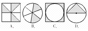 6.有如下四个游戏盘,如果撒一粒黄豆落在阴影部分,则可中奖.小明希望中奖,他应选择的游戏盘是 ( )