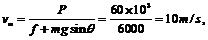 (2)汽车上坡时,速度越来越大,必须不断减小牵引力以保证输出功率不超过额定输出功率,当牵引力F= f + mgsinθ=6×103 N时,汽车加速度为零,速度增大到最大,设为vm,则P=Fv=(f+mgsinθ)·vm;