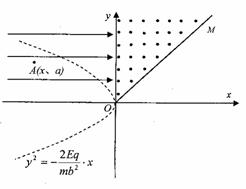 (其中b为常数,是已知量)。若将此粒子从该抛物线轨迹上位于第二象限的任意一点由静止释放,粒子都能沿垂 直x轴方向射出磁场。求直线OM与x轴的正方向的夹角