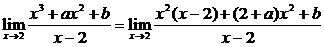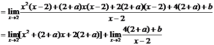 分析:因为x→2时,分母x-2用代入法时等于0,所以应该用因式分解法,则分母中应该也有x-2这个因子,只要将公因式x-2消去,用代入法求极限,再根据极限是8,就可以求a,b了.
