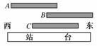 如右图所示为A、B、C三列火车在一个车站的情景,A车上的乘客看到B车向东运动,B车上的乘客看到C车和站台都向东运动,C车上的乘客看到A车向西运动.站台上的人看A、B、C三列火车各向什么方向运动?