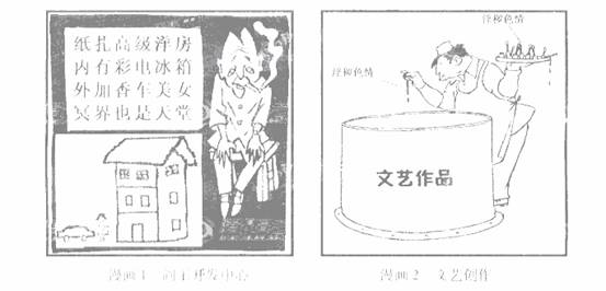 注:漫画1、2分别根据华君武的《阎王开发中心》、方成的《最新配方》改编