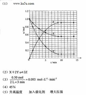 (5)由题目所给图象可知,在1中,平衡时Z的物质的量小于原平衡的物质的量,说明平衡逆向移动,条件为升高温度。在2中,平衡时Z的物质的量与原平衡相同,且速率加快,条件为加入催化剂;在3中,平衡正向移动,且速率加快,条件为加压。