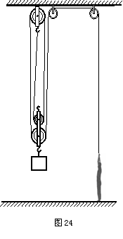 如图24所示,质量为60kg的工人在水平地面上,用滑轮组把货物运到高处。第一次运送货物时,货物质量为130kg,工人用力F1匀速拉绳,地面对工人的支持力为N1,滑轮组的机械效率为η1;第二次运送货物时,货物质量为90 kg,工人用力F2匀速拉绳的功率为P2,货箱以0.1m/s的速度匀速上升,地面对人的支持力为N2, N1与 N2之比为2:3。(不计绳重及滑轮摩擦, g取10N/kg)
