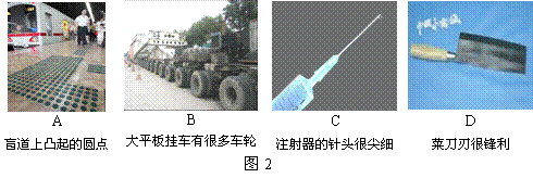 4.图2中,采用增大受力面积的方法减小压强的实例是