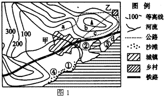 4.甲镇计划修建一小港口,在图1中①②③④四处最合理的是
