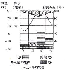 右下图表示某河流一个水文站的气温、降水状况及该河段补给类型,据图回答5-6题。