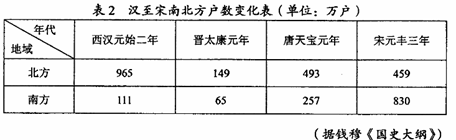 影响表2汉代至宋代南北方户数变化的主要因素是