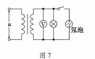 7.(2009·江苏高考)如图7所示,理想变压器的原、副线圈匝数比为1∶5,原线圈两端的交变电压为u=20sin100πt V.氖泡在两端电压达到100 V时开始发光.下列说法中正确的有 ( )