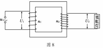 8.如图8所示是霓虹灯的供电电路,电路中的变压器可视为理想变压器.已知变压器原线圈与副线圈的匝数比=,加在原线圈上的电压为u1=311sin100πt(V),霓虹灯正常工作的电阻R=440 kΩ,I1、I2表示原、副线圈中的电流.下列判断正确的是( )