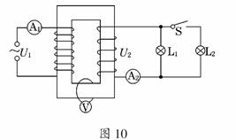(3)当开关S断开时,有:RL=U2/I2=44 Ω.当开关S闭合时,设副线圈总电阻为R′,有R′=RL/2=22 Ω,副线圈中的总电流为I2′,则I2′=U2/R′=10 A.由U1I1′=U2I2′可知,I1′== A.