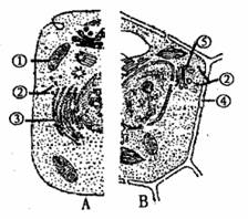 33.(8分)右下图A、B为动物细胞、植物细胞亚显微结构示意图。请据图回答: