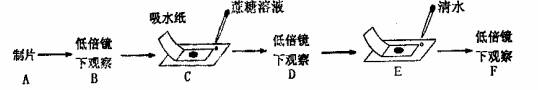 34.(7分)下图为某同学利用紫色洋葱表皮作为实验材料,观察植物细胞质壁分离与复原的基本操作步骤。请据图回答: