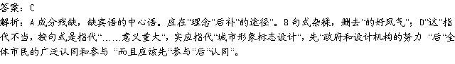 解析: A“阳光、空气、水”和“一切有用的东西”是包含关系,不能并列;残缺。B缺宾语中心语,在“工作”后加“的建议”D“蓝图”与实现“搭配不当。